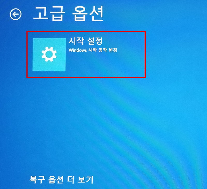 - 재부팅 후 나타나는 화면에서 문제 해결 > 고급 옵션 > 시작 설정으로 이동합니다.