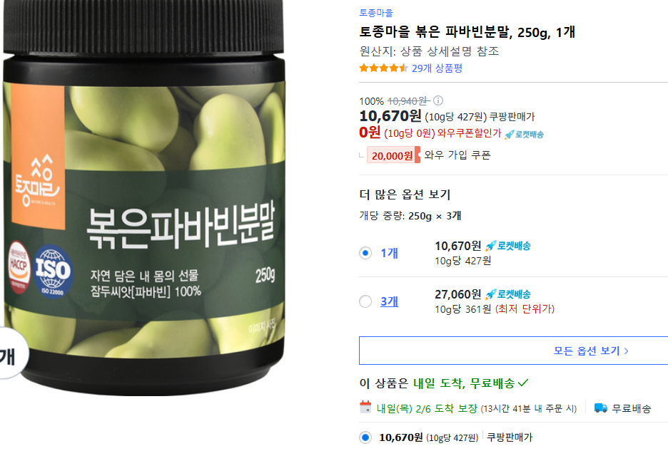- 아침: 파바빈 분말을 우유나 요거트에 첨가