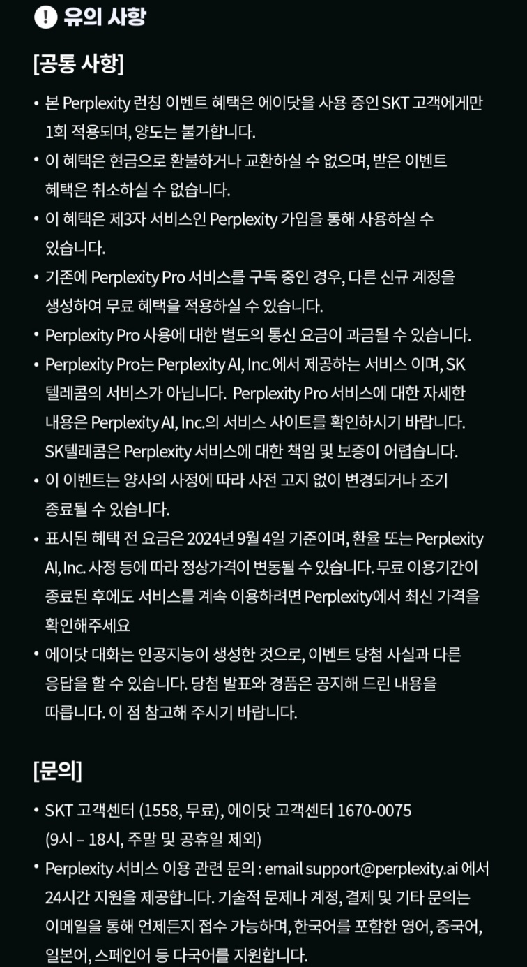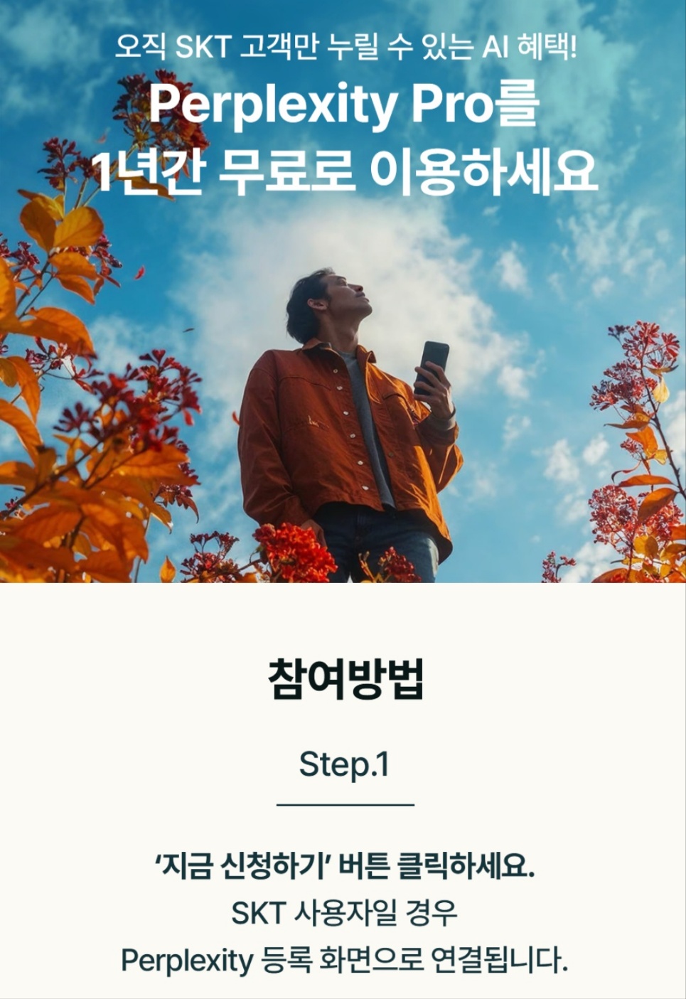 지금 바로 에이닷을 통해 퍼플렉시티 무료 사용 신청을 하고, 1년 동안 퍼플렉시티 프로를 무료로 이용하세요!