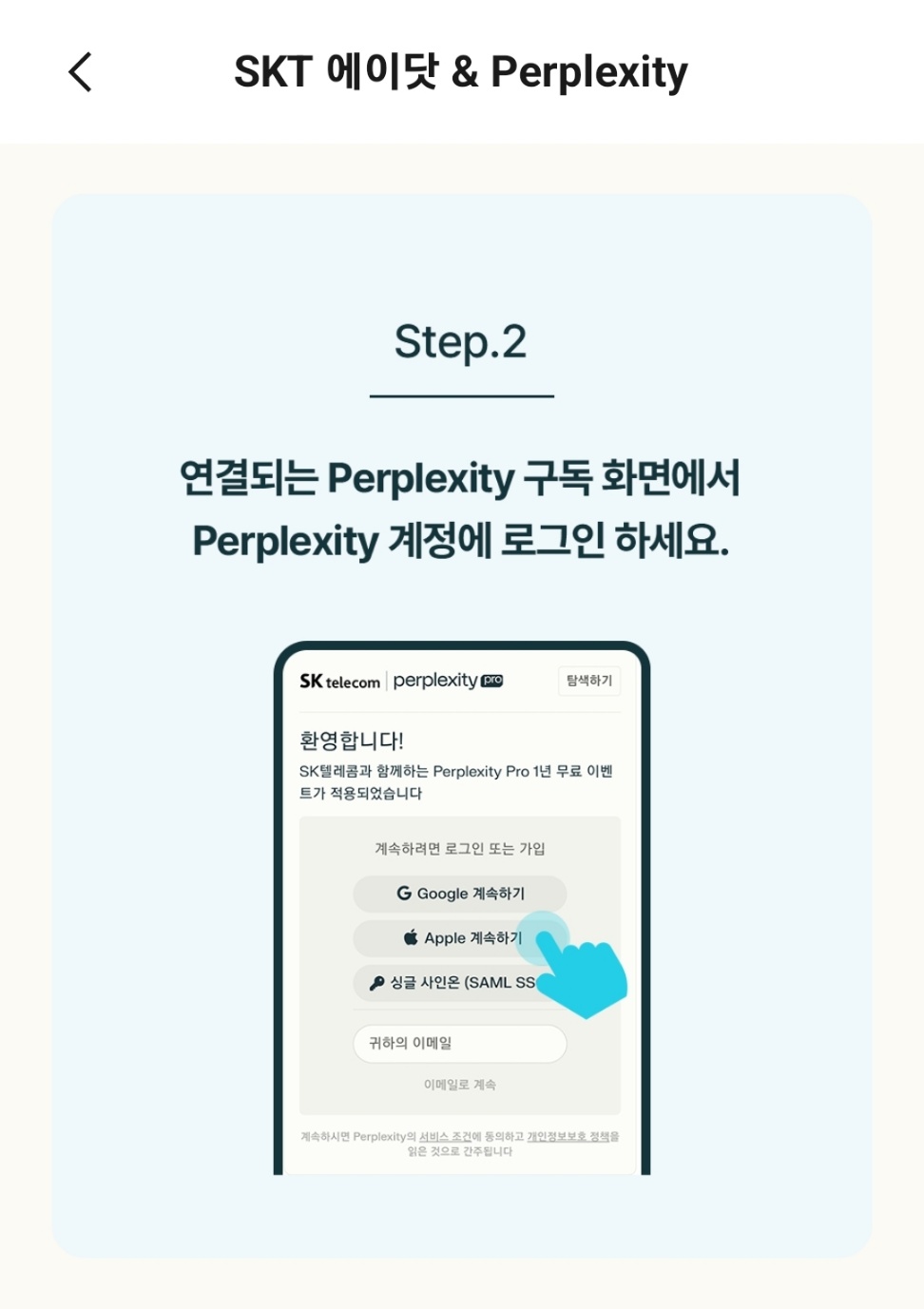 2) 이벤트 페이지 접속: 에이닷을 통해 퍼플렉시티 무료 사용 신청 페이지에 접속합니다.