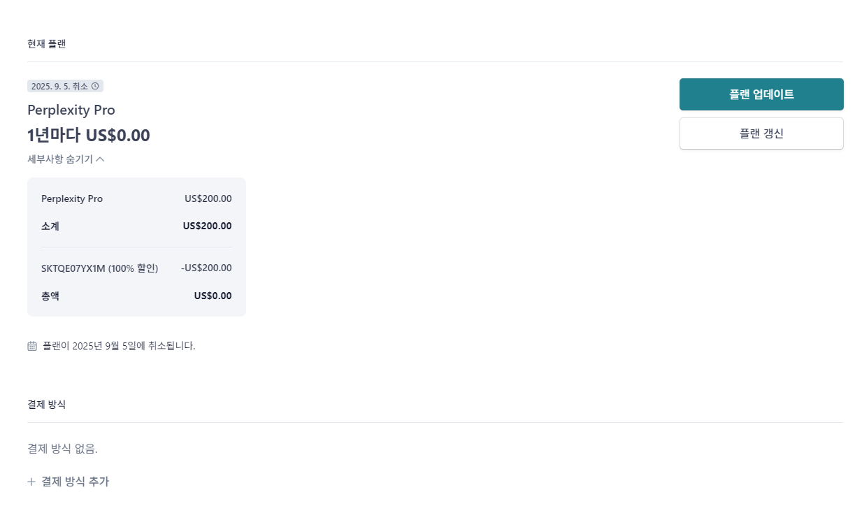 신청완료는 퍼플렉시티 홈페이지에서 가능합니다.(PC에서만 확인가능한듯 합니다.)