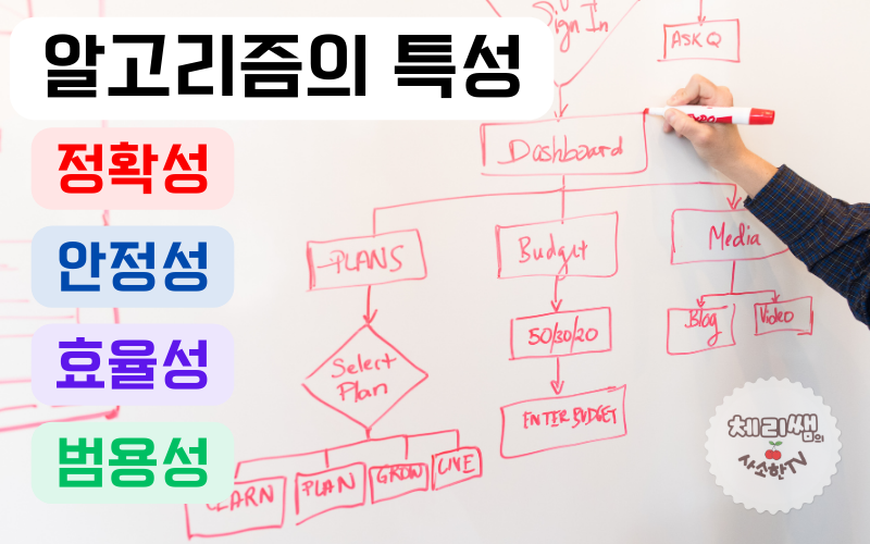 알고리즘은 컴퓨터가 문제를 해결하기 위해 따라야 하는 절차나 방법을 순서에 따라 기호를 사용하여 나타낸 것으로 다음과 같은 특성을 가지고 있습니다.