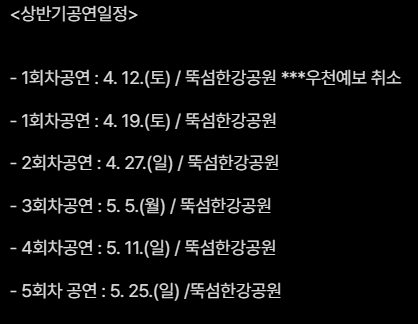 ⚠ 우천 시 일정 변경될 수 있으니 공식 홈페이지 체크는 필수! 📱